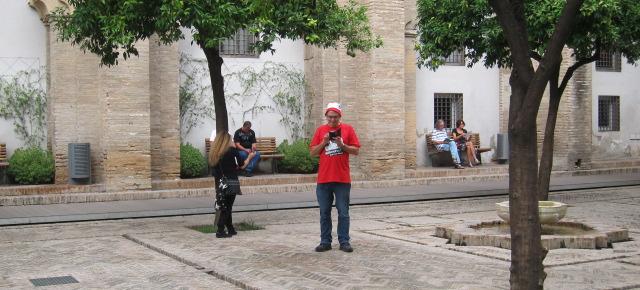 Der Herr in rot ist übrigens der sachkundige Reisführer inmitten des Orangenhofes. Die Stufen der Kathedrale dienten im 16. und 17 Jh. … ach, lassen wir das !