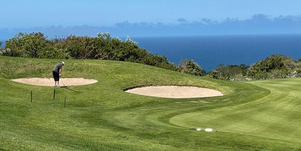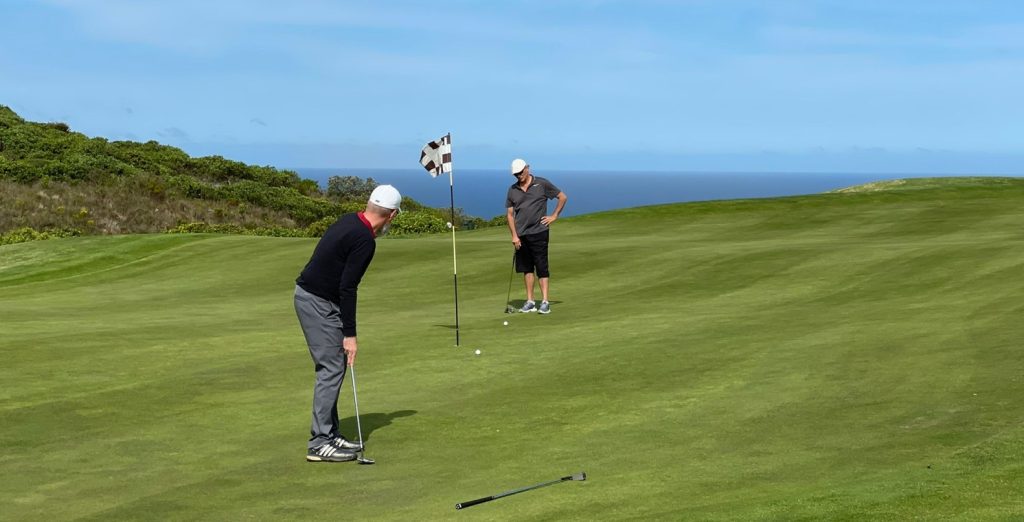 Immer den Ball und den indischen Ozean im Blick – gibt schlimmeres. Paar & Birdie wurden auch kurz gesichtet – lief nachhaltig für die Umstände. Neue Schuhe (Gladbach Grün !) auch passig – gleich mal in Knysna gelassen. Nächstes mal sollten dann auch die bestellten Schläger im Golfladen abholbereit sein… hoffentlich.
